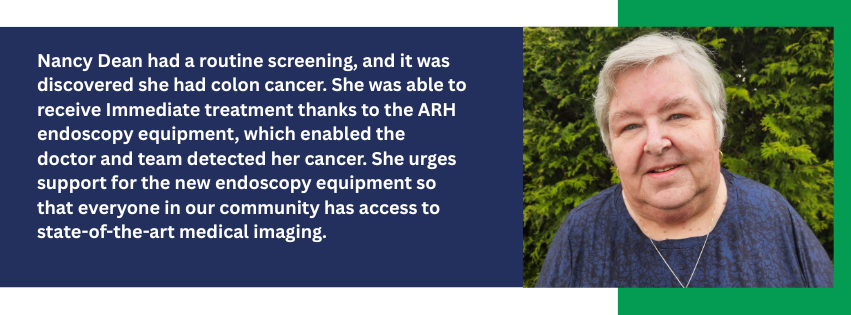 “When my doctor suspected something, the endoscope at ARH gave them the answers they needed, and it saved my life”– Nancy Dean, Grateful Patient